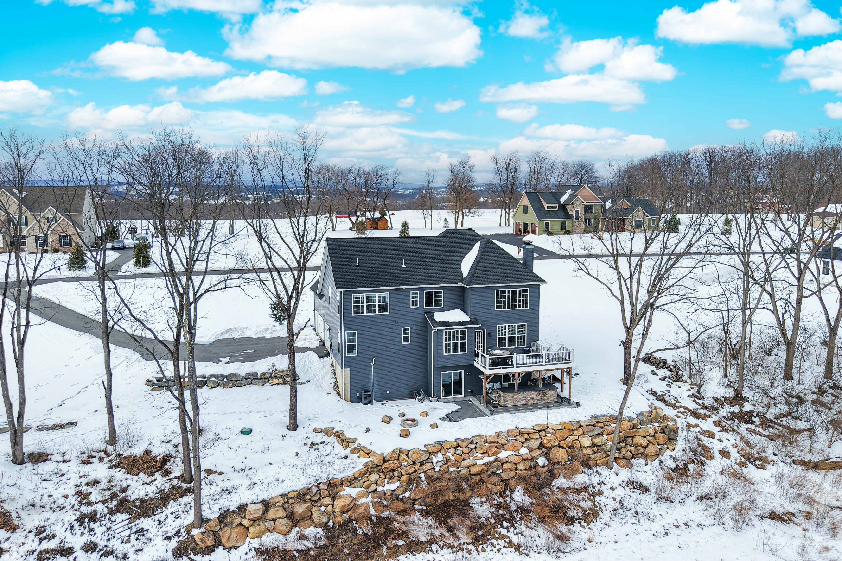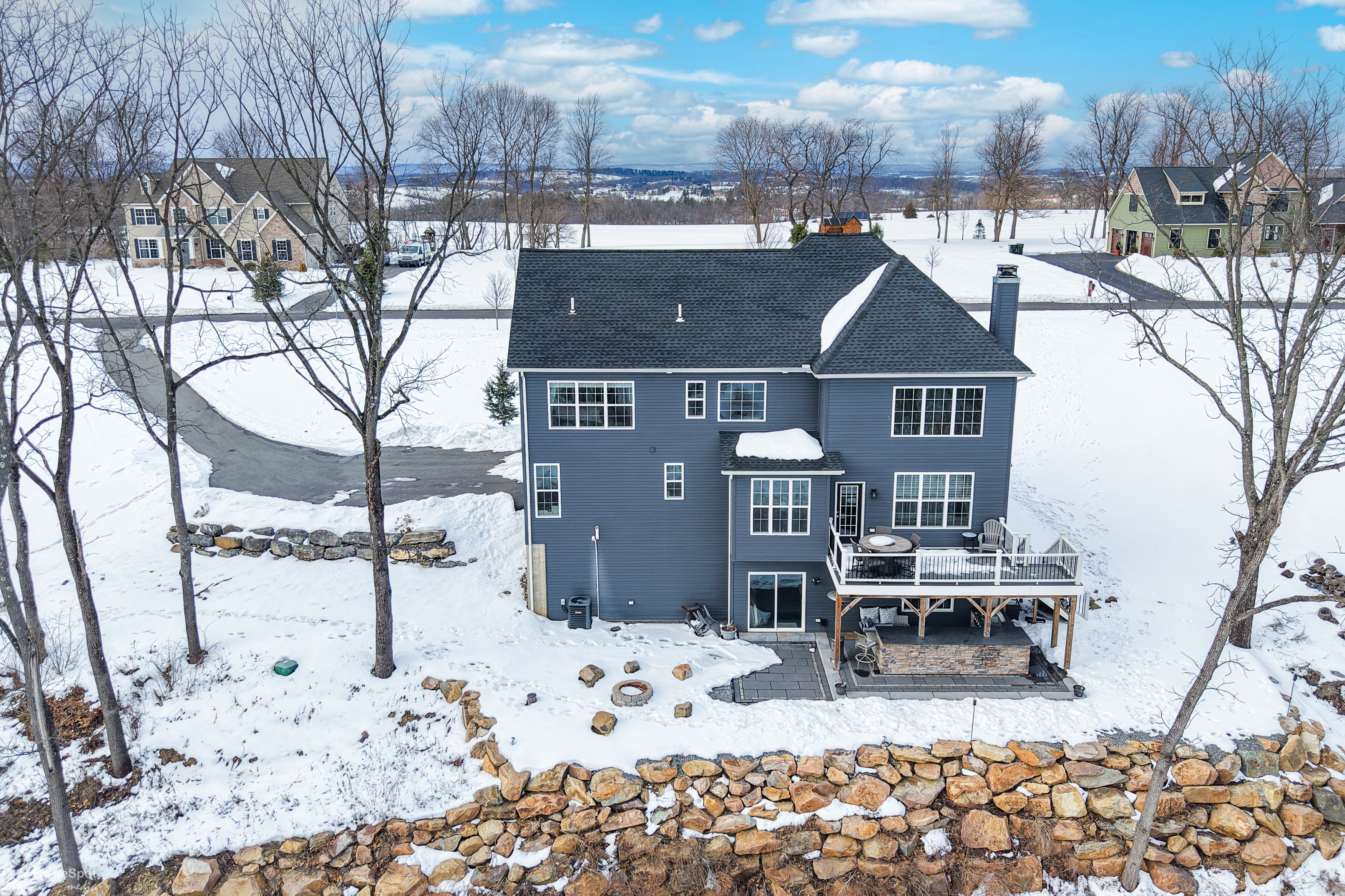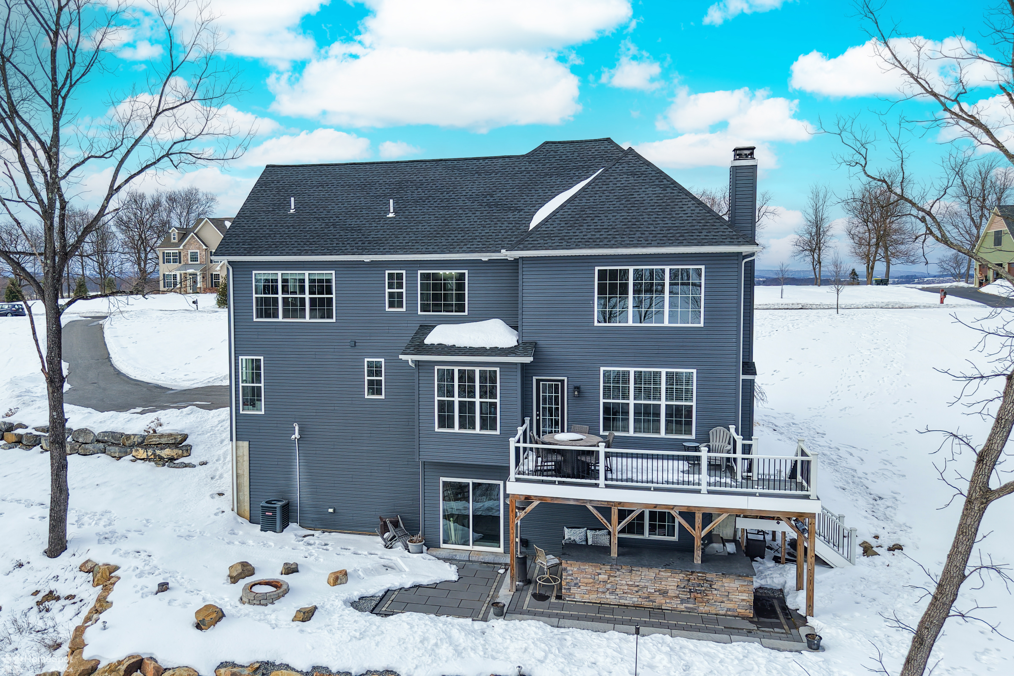 Welcome to this beautifully maintained 2019 Colonial nestled on 3.39 scenic acres in the Cottage Gates community in Northwestern Lehigh. Offering 2,594 sq. ft. above grade with an additional 1,300 sq. ft. walk-out lower level ready to finish including rough plumbing for full bath, this 4-bedroom, 2.5-bath home blends modern comfort with peaceful surroundings. The open-concept main level features a spacious eat-in kitchen with peninsula, breakfast area, and seamless flow into the inviting family room with floor to ceiling stone wood-burning fireplace—perfect for everyday living and entertaining. A first-floor den/office, formal dining room, and convenient mudroom add flexibility and function. Plus a bonus room/2nd office or possible 5th bedroom. Upstairs, the generous primary suite boasts a walk-in closet and spa-like bath with soaking tub. Three additional bedrooms, full bath, and second-floor laundry complete the upper level. Enjoy outdoor living at its finest with a covered patio, deck, fire pit, and partially wooded lot situated on a quiet cul-de-sac. Additional highlights include a 3-car garage, central air, built-in storage, and quality stone/vinyl exterior. Peaceful country setting with modern amenities—schedule your private tour today!